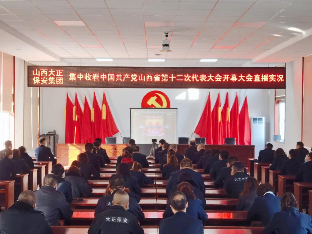 10月25日上午,山西大正保安服務(wù)集團(tuán)有限公司領(lǐng)導(dǎo)班子成員及總部干部職工100余人在會議室集中觀看中國共產(chǎn)黨山西省第十二次代表大會開幕大會直播實(shí)況,各基層支部、分公司組織員工通過廣播、電視、網(wǎng)絡(luò)等形式收聽收看。
