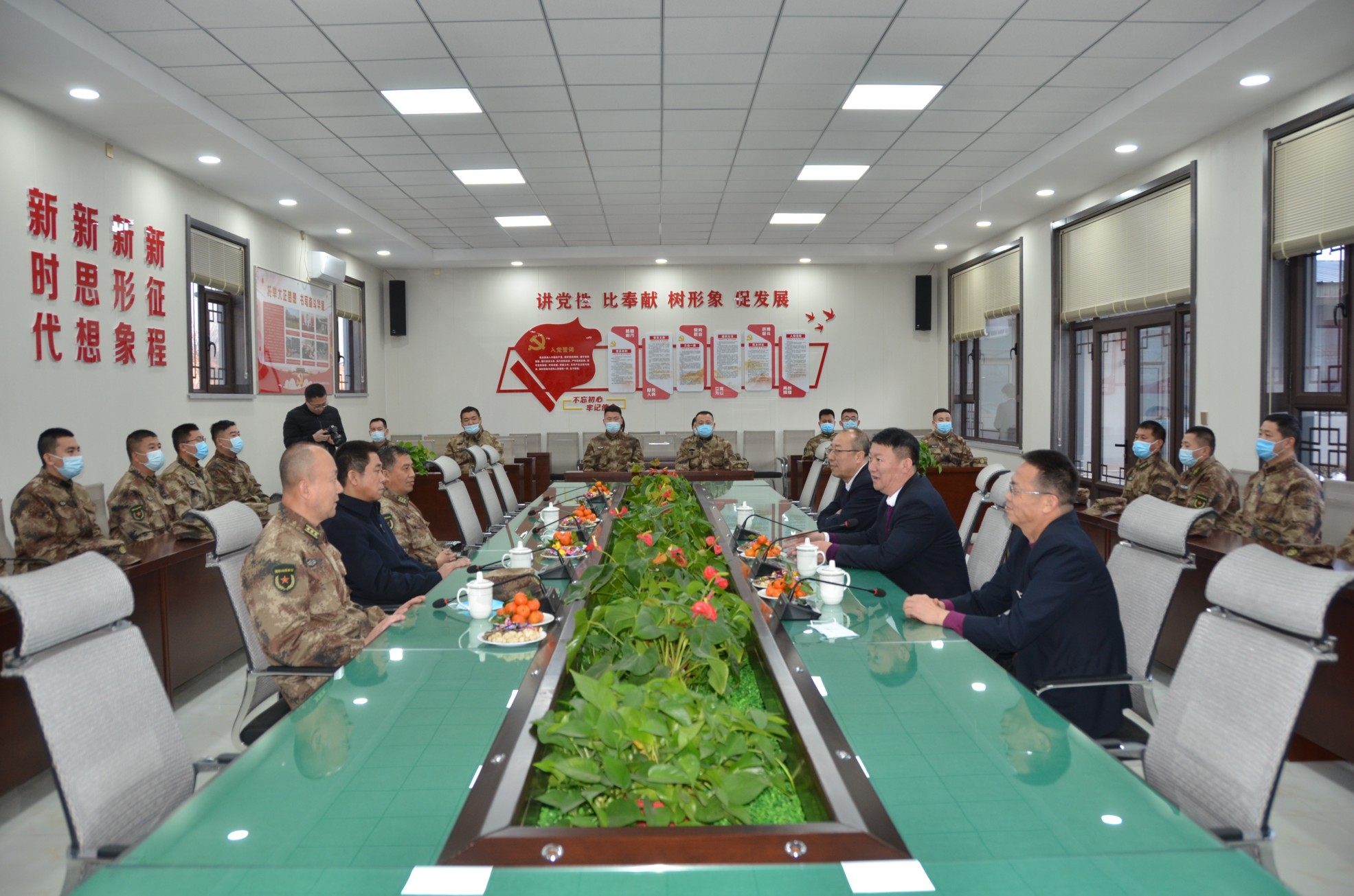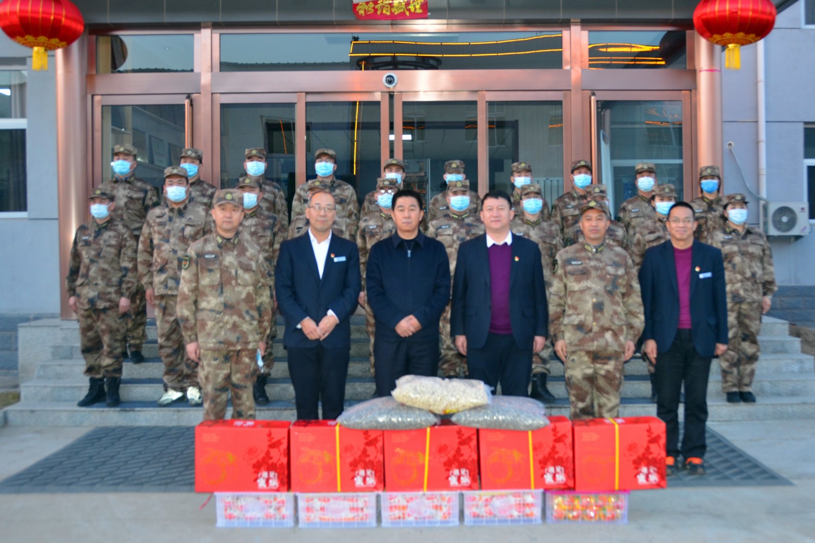 在春節(jié)即將到來之際,為營造關心支持國防和軍隊建設的濃厚社會氛圍,傳遞上級黨委、政府的關心關愛,1月29日,忻府區(qū)委常委、常務副區(qū)長孫曉磊,忻府區(qū)人武部政委劉啟國、部長李強一行蒞臨我公司進行節(jié)前慰問,為物業(yè)公司民兵應急連隊員帶來了新春祝福和慰問品。集團公司領導班子成員趙培宏、王明生、呂雙明參加慰問座談活動。