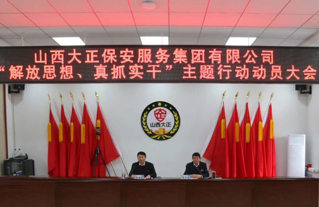 會(huì)上,陳志平宣讀《山西大正保安服務(wù)集團(tuán)有限公司關(guān)于開展“解放思想、真抓實(shí)干”主題行動(dòng)的工作方案》,對(duì)照‘方案’要求提出具體工作部署。主題行動(dòng)以習(xí)近平新時(shí)代中國(guó)特色社會(huì)主義思想為指導(dǎo),全面貫徹黨的十九大和十九屆歷次全會(huì)精神和習(xí)近平總書記視察山西重要講話重要指示精神,深入貫徹省市黨代會(huì)和經(jīng)濟(jì)工作會(huì)議精神,以“解放思想、真抓實(shí)干”為主題,以全方位推動(dòng)高質(zhì)量發(fā)展為目標(biāo),在全公司范圍內(nèi)來一次思想大解放、作風(fēng)大轉(zhuǎn)變、成果大檢驗(yàn)。為譜寫大正集團(tuán)新時(shí)代改革發(fā)展工作新篇章凝聚力量。