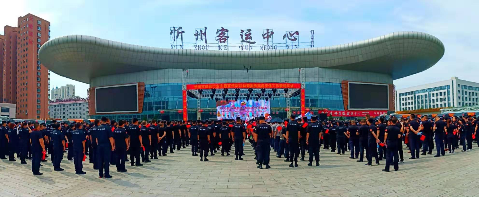 7月24日,忻州市公安局、忻州市保安協(xié)會(huì)會(huì)同山西大正保安服務(wù)有限公司、忻州市公安局直屬分局、忻州市公安局忻府分局及全市18家保安企業(yè)在忻州市客運(yùn)中心與全國各地同步舉行保安行業(yè)“不忘初心跟黨走、牢記使命勇?lián)?dāng)”主題宣傳周活動(dòng)暨服務(wù)國慶安保工作誓師儀式。