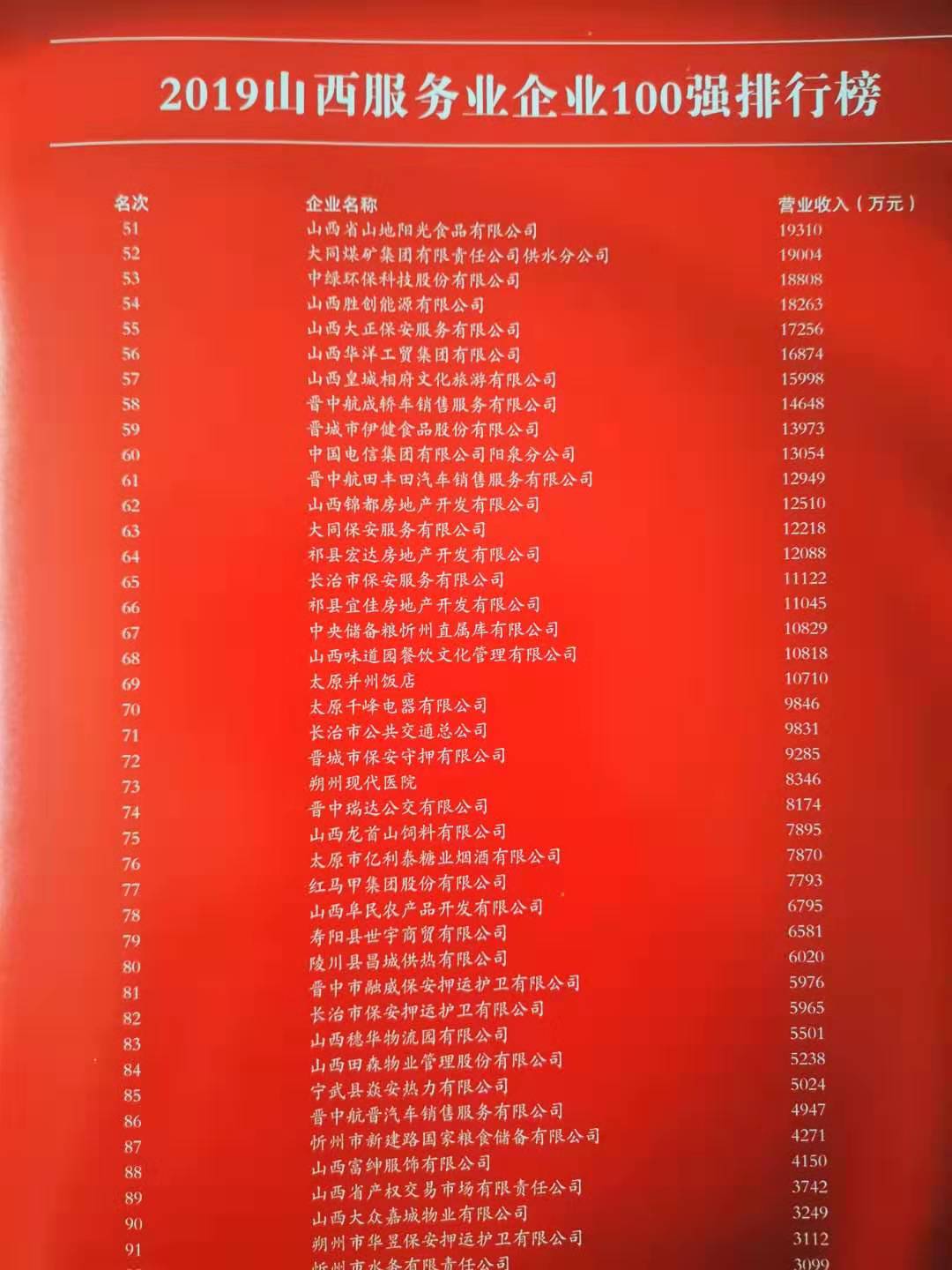 11月8日,2019山西企業(yè)100強(qiáng)在省城太原發(fā)布。經(jīng)山西省百強(qiáng)企業(yè)排序?qū)<椅瘑T會審定,山西大正保安服務(wù)有限公司再次榮獲“山西省服務(wù)業(yè)100強(qiáng)企業(yè)”,這是該公司自2014年以來連續(xù)五次榮登該榜。公司黨委副書記、副總經(jīng)理陳志平前往參會。