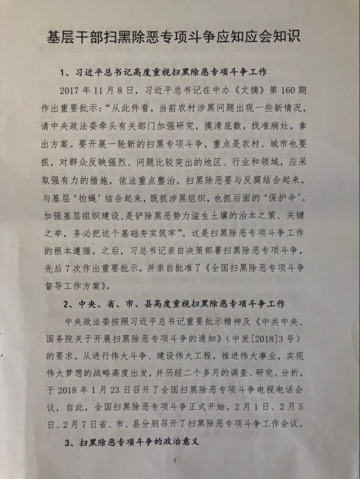 基層干部掃黑除惡專項斗爭應(yīng)知應(yīng)會知識