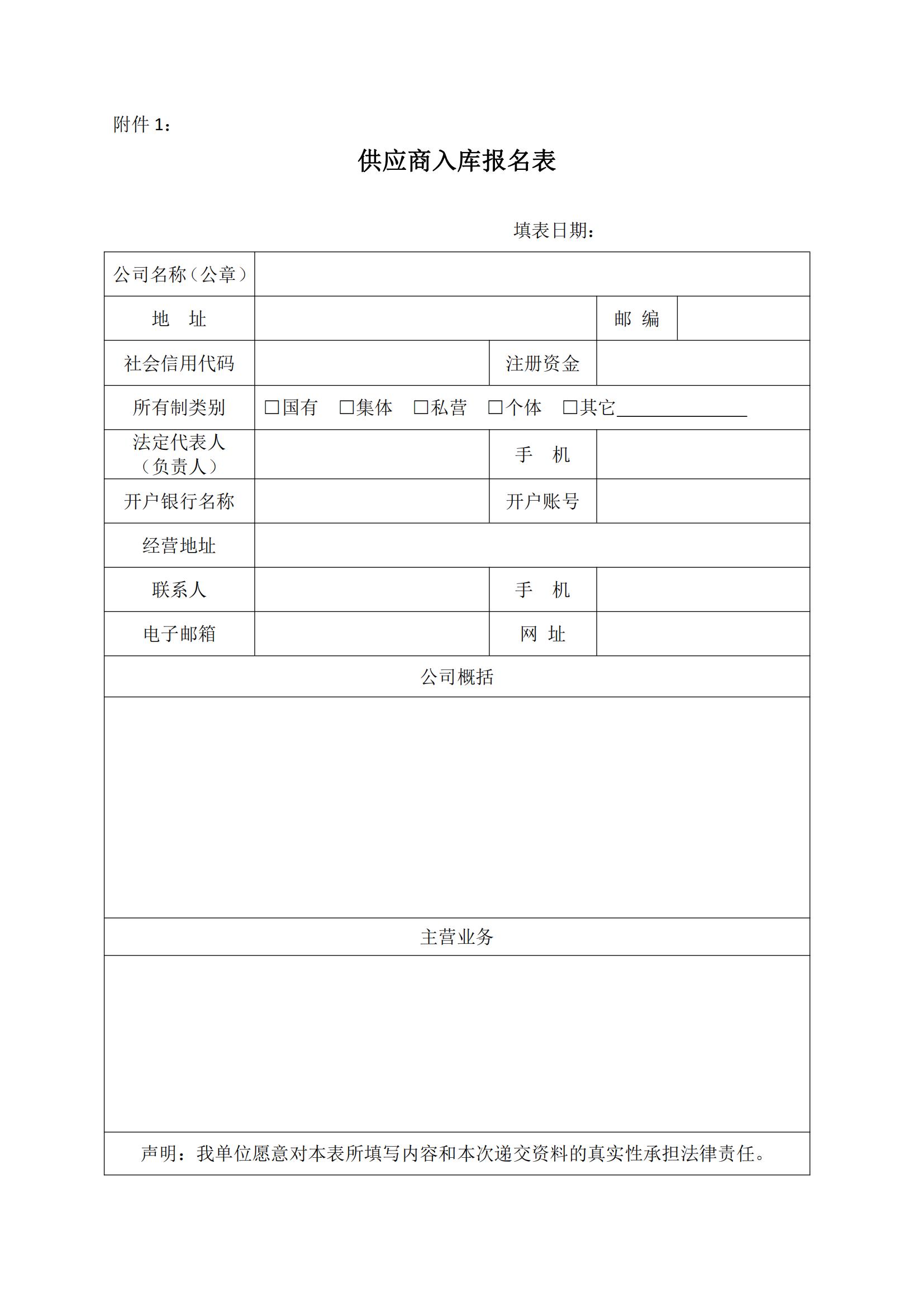 1、供應商入庫報名表(見附件);