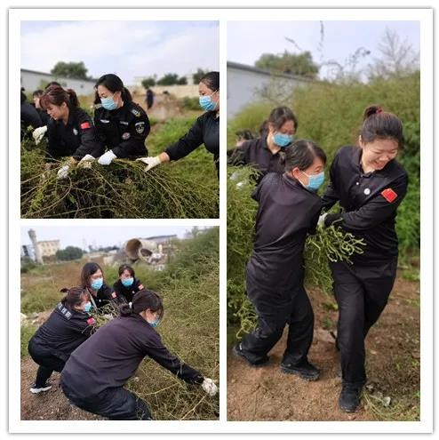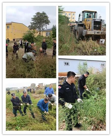 后勤部門的同志早已準備好了鐮刀、鋤頭、鐵鍬,一大早,各部門組織員工按照劃分好的區(qū)域開始除草行動。剛進場地看見有的野草長的非常茂盛,高過女同志,一時還真找不著下手之處,很快大家便找到了對付辦法,刀砍鍬鏟手拔,還有的幾個人合力拔大的雜草,男同志揮汗如雨,女同志也不甘落后,鉚足了勁頭,還有基層趕來助戰(zhàn)的保安員幫助“后進隊伍”,勞動現(xiàn)場一片祥和景象。還有部分區(qū)域?qū)?ldquo;無主”狀態(tài),大家積極主動配合,合力圍剿,經(jīng)過全體職工的辛勤勞動,將近中午,大片大片的雜草被清理的干干凈凈。