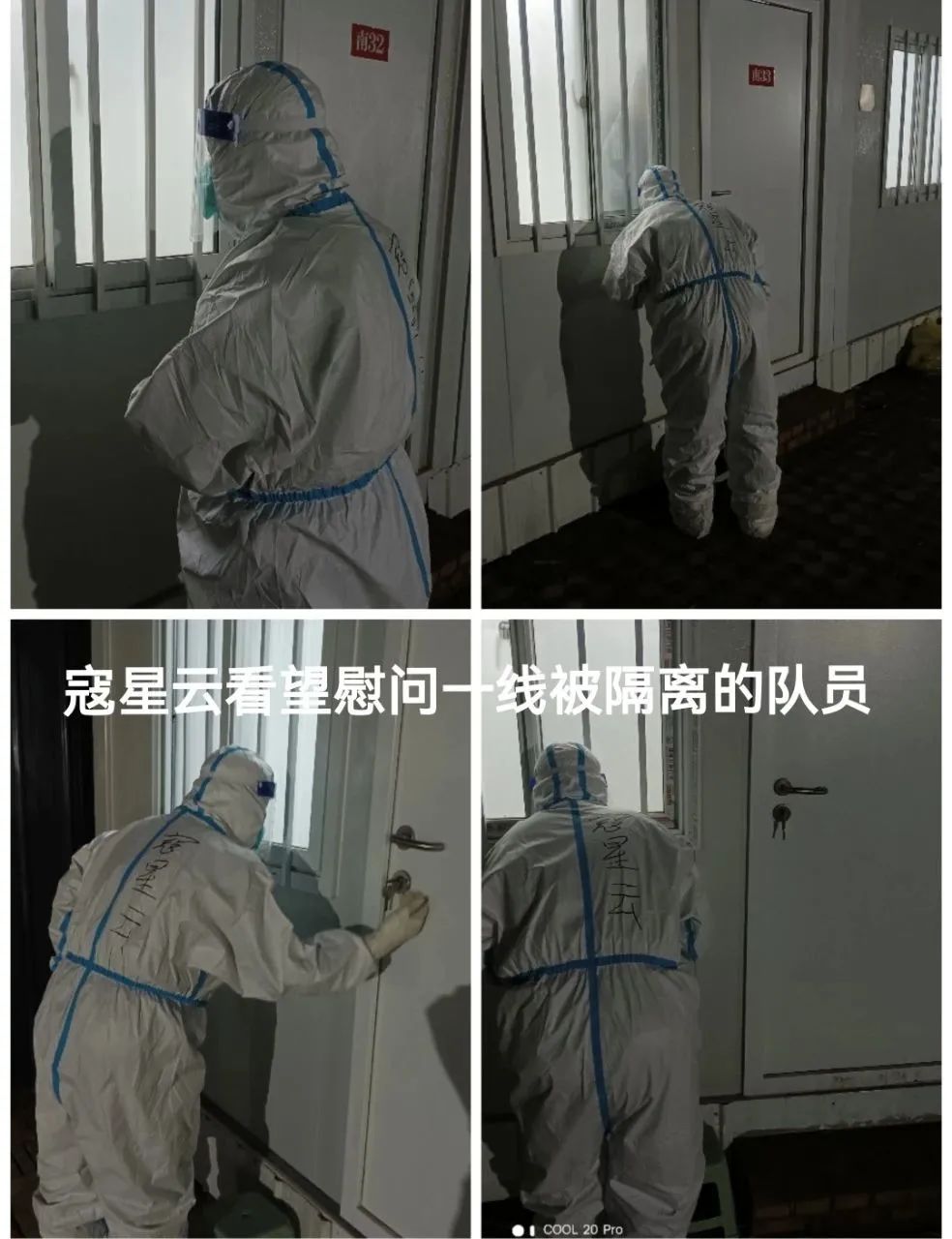 關(guān)心溫暖人心,關(guān)懷凝聚力量,領(lǐng)導(dǎo)的關(guān)心是對(duì)一線員工的最大安慰和精神鼓舞,組織的關(guān)懷是凝聚力量、激發(fā)斗志的不竭動(dòng)力,不論是出征前的動(dòng)員講話,還是送別隔離區(qū)一線隊(duì)員的鼓勵(lì)和問候,以及在微信群里的囑咐鼓勁,寇星云同志始終把大家的個(gè)人安危放在第一位,時(shí)刻叮囑隊(duì)員們必須做好自我防護(hù),確保自身安全,堅(jiān)決杜絕內(nèi)部感染傳播,只有自己安全才能更好地服務(wù)病患、服務(wù)好隔離人員,才能高質(zhì)量、高標(biāo)準(zhǔn)完成我們的使命任務(wù),才是對(duì)家人、對(duì)社會(huì)的真正負(fù)責(zé)。他鼓勵(lì)大家發(fā)揮守押隊(duì)伍能征善戰(zhàn)、沖鋒陷陣、挑戰(zhàn)自我,苦干實(shí)干的優(yōu)良作風(fēng),堅(jiān)定抗疫有我、戰(zhàn)疫必勝、疫情不散、堅(jiān)守陣地的信心和決心。對(duì)在工作中因勞累過度、身體受傷、出現(xiàn)不適的隊(duì)員更是關(guān)心備至、體貼入微,親自看望受傷隊(duì)員田振華,關(guān)心照顧因低血糖暈倒在一線的隊(duì)員吳彩霞,慰問在隔離宿舍和方艙隔離區(qū)因勞累過度出現(xiàn)身體不適的13名隊(duì)員,給他們送去生活用品,并和他們進(jìn)行親切地交談,帶去組織的關(guān)懷,領(lǐng)導(dǎo)的關(guān)心,凝聚人心,鼓舞士氣。