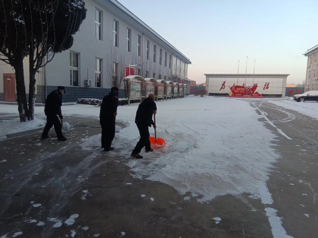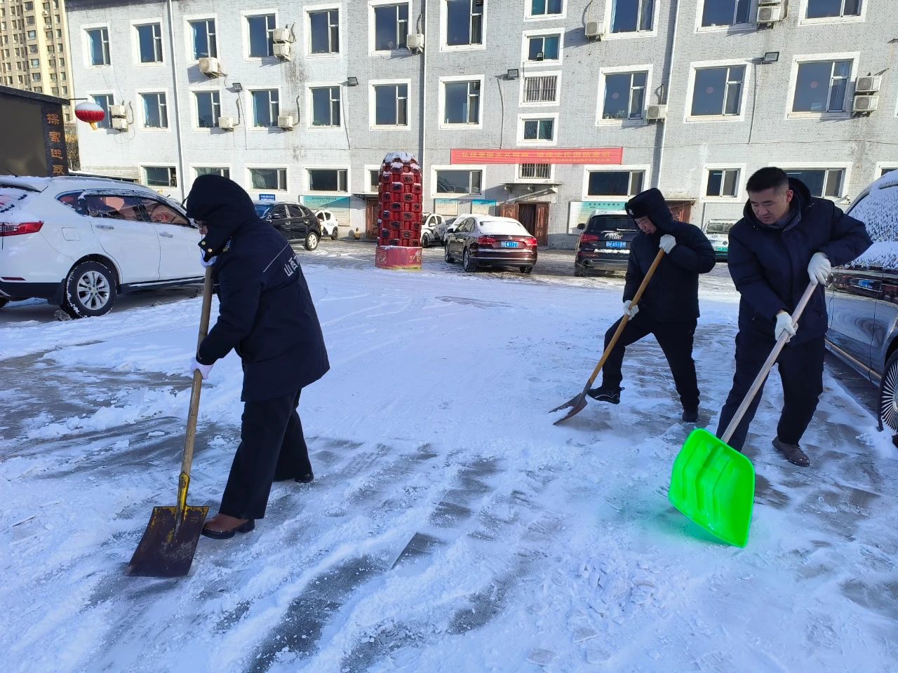 清掃積雪的工作看似簡(jiǎn)單,卻充滿了挑戰(zhàn)。積雪已經(jīng)結(jié)成厚厚的冰層,路面濕滑,每一步都需要小心翼翼。盡管如此,保安隊(duì)伍從不畏懼嚴(yán)寒和困難,始終保持著高度的責(zé)任感,認(rèn)真負(fù)責(zé)地完成任務(wù)。無論是周邊的道路,還是進(jìn)出頻繁的停車場(chǎng),哪里有積雪,哪里就有我們忙碌的身影。在大家的努力下積雪很快被清理干凈,確保了每條道路暢通無阻,為客戶單位提供了一個(gè)安全、便捷的環(huán)境,為市民的安全出行保駕護(hù)航。