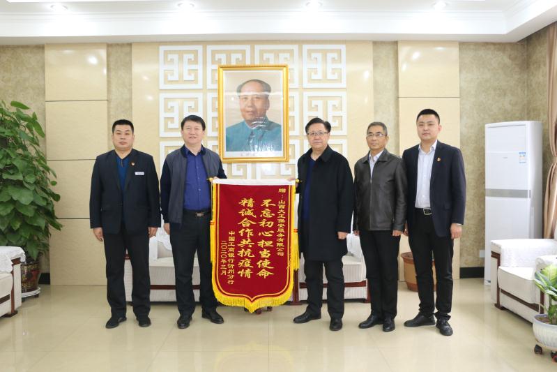 趙培宏代表公司感謝工行忻州分行對我方守押工作的肯定,表示為客戶單位提供優(yōu)質(zhì)服務(wù)是公司職責所在,工行忻州分行贈送錦旗,極大地鼓舞了公司干部員工的工作熱情。今后,公司將進一步提升服務(wù)意識和服務(wù)質(zhì)量,用實際行動來踐行責任與擔當,以更優(yōu)質(zhì)的服務(wù)、更專業(yè)的水平滿足客戶需求,一同抗擊疫情,更好的為忻州經(jīng)濟社會建設(shè)服務(wù)。