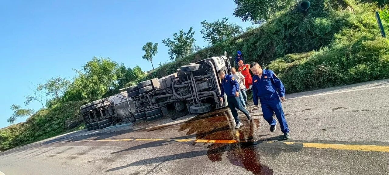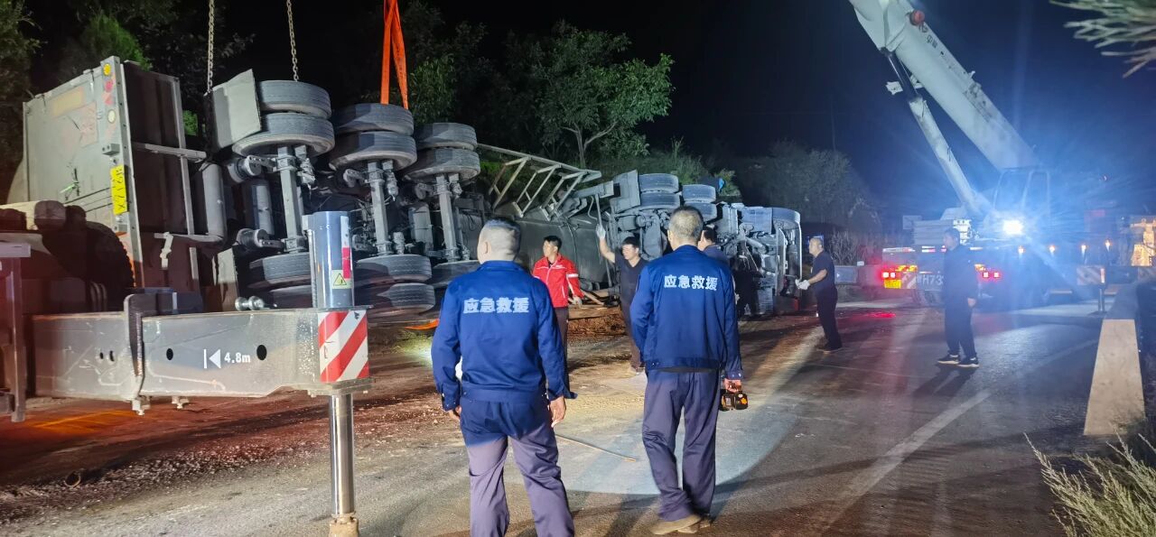 2025年9月6日,一輛裝載液化氣的重型半掛牽引車在土崖塔鄉(xiāng)寨上村附近路段發(fā)生側(cè)翻,現(xiàn)場情況緊急。縣應(yīng)急管理局救援大隊(duì)、縣公安局、縣消防救援大隊(duì)、保德守押中隊(duì)?wèi)?yīng)急救援隊(duì)等多部門迅速響應(yīng),第一時(shí)間趕赴現(xiàn)場協(xié)同開展應(yīng)急救援工作,全力守護(hù)群眾生命財(cái)產(chǎn)安全。經(jīng)現(xiàn)場查看,氣罐車罐體出現(xiàn)輕微變形,并伴隨機(jī)油等混合液體流出,液化氣具有易燃易爆特性,事故地點(diǎn)臨近村落,嚴(yán)重威脅了人民群眾生命財(cái)產(chǎn)安全和過境車輛安全交通安全。